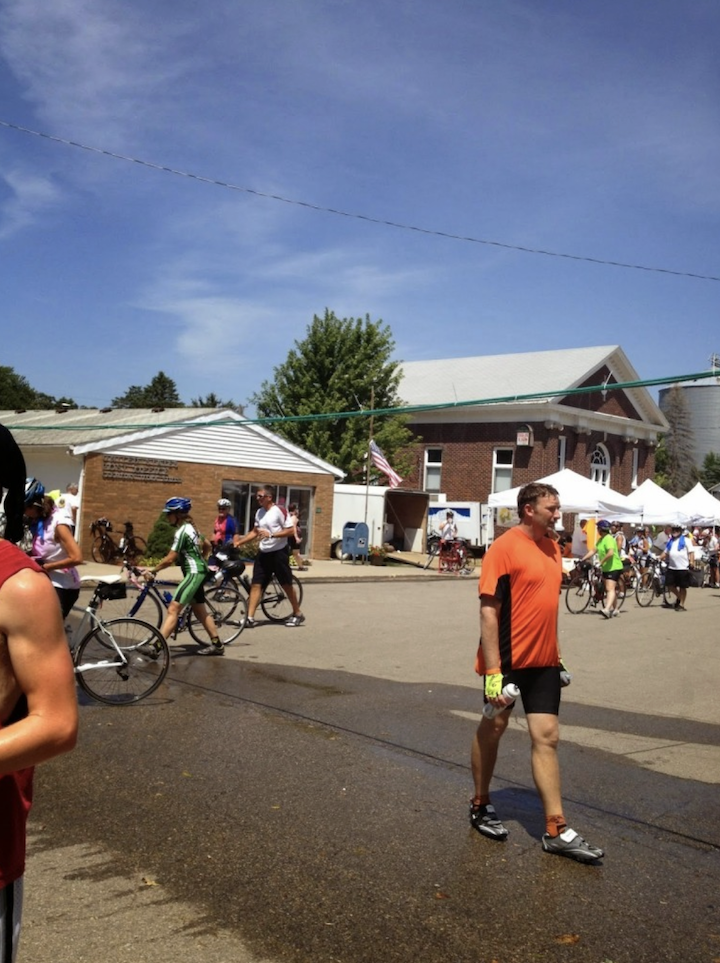 In Marshalltown, I met Michelle Haalman, a fellow cancer survivor and friend of my sister, Brenda. She is working for Bubba’s Pampered Pedalers and often buys Steelers tickets from me. It was nice to say hello. We had ridden together previously at the Livestrong Challenge – Philly.