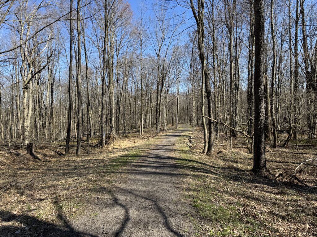 I reached the trail and headed west so that I would cross 271 and at least understand this portion. There were signs that the trail was washed out, and in some places it was rutted. I found a parking area not far from where the trail goes under Rte. 422. And that would be as far as I got.