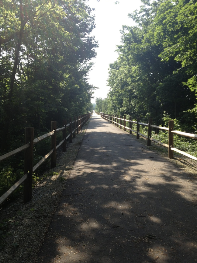 The rail trail was beautiful. Almost no riders were on it. It is paved with good asphalt, with much of it shaded.
