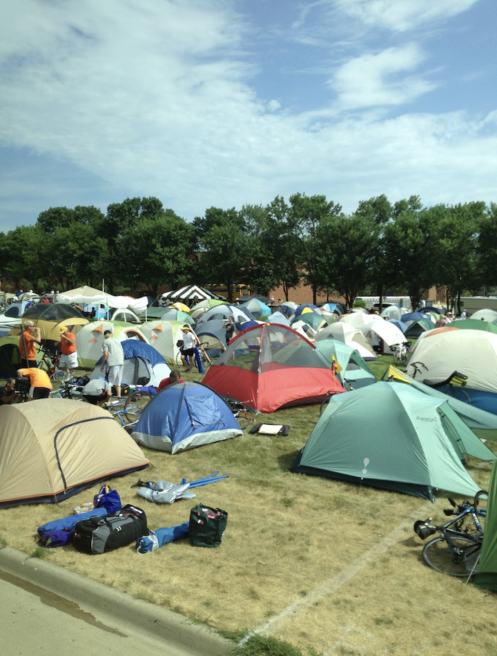 And for me, RAGBRAI began in Sioux Center. The city center was transformed into RAGBRAI headquarters, and so it began. Arriving around 4:30 p.m., I set up my tent and then went for a bike ride.