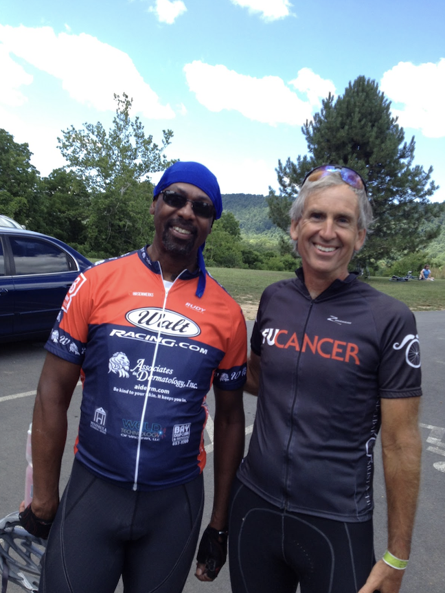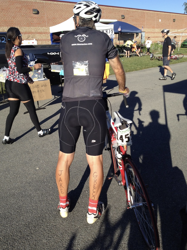 Just 8 years old and battling brain cancer, Jake has taken chemo, radiation, and even brain surgery in stride. Weakened by my lengthy rides, I felt energized today riding with Jake’s name on my calves.