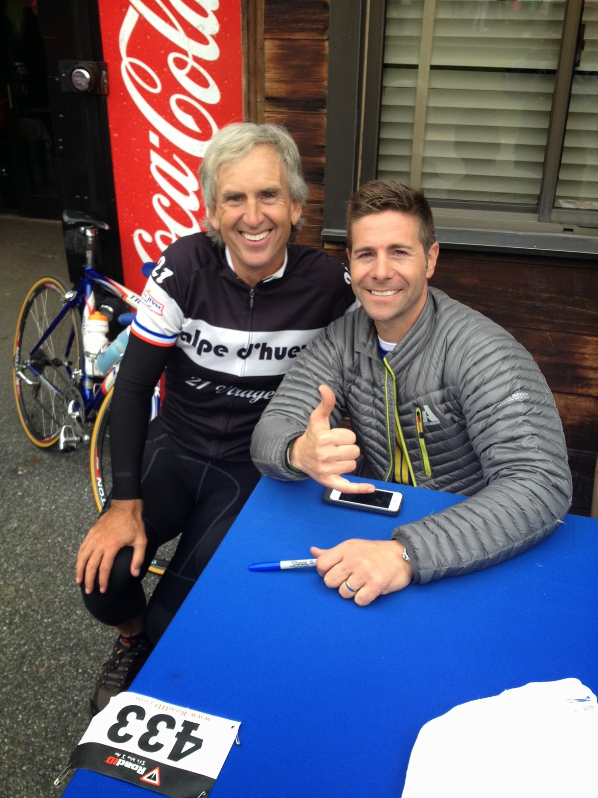 Most interesting story – I was looking at the autograph table with Jens Voigt and Ben King at the Save a Limb Ride when someone grabbed my phone and said “jump in and I’ll take your picture.” That someone was former pro rider now TV commentator, Robbie Ventura.