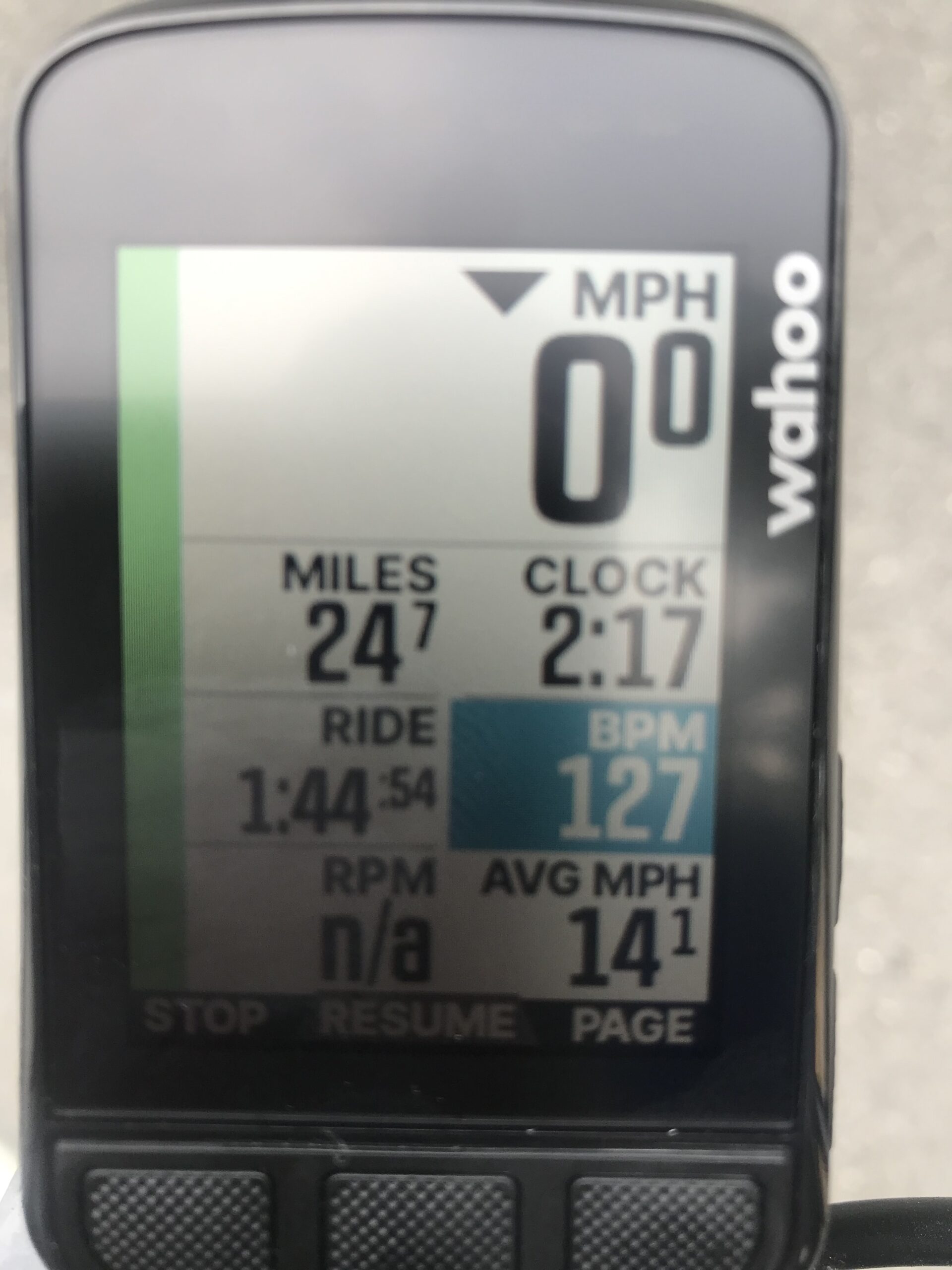 And a word about accuracy. In this high-tech world, we expect our units to find us with feet if not inches by bouncing a tracking signal to a satellite in space. They are not always that accurate. When I first got my Bolt I mounted it next to the Garmin and for about six weeks I ran both units simultaneously. And rarely did the two head units produce the same data. If I did a 50-mile ride one might display 50.04 and the other 49.86. And it wasn’t the case that the Bolt was always greater than the Garmin. Or the Garmin always showed more than the Bolt. It depends.